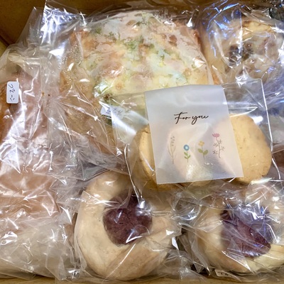 写真は一例で、どんなパンが送られてくるかはその日の状況によりパン屋さんにおまかせ。