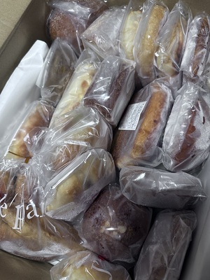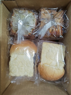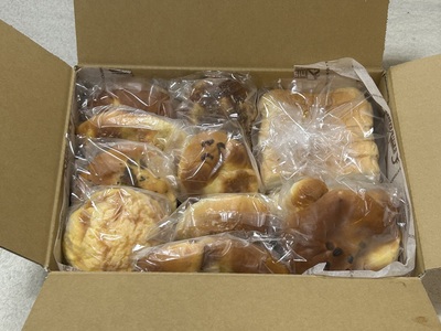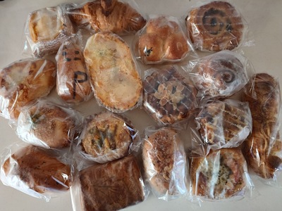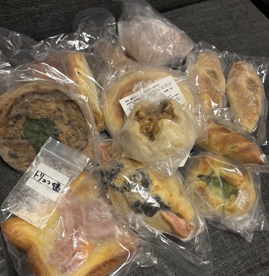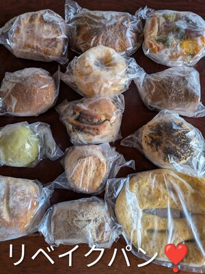 パンは冷凍の物もあるため、リベイク(温め直し)して召し上がってください。すぐに食べないものは冷凍庫に保管。