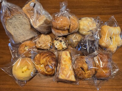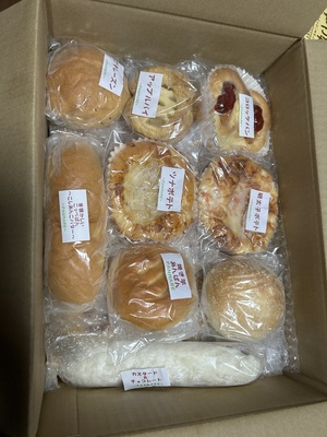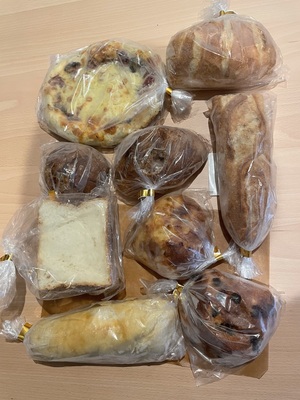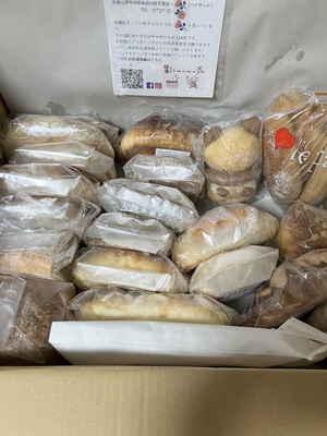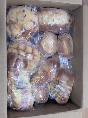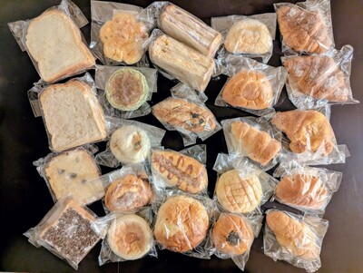写真は一例で、どんなパンが送られてくるかはその日の状況によりパン屋さんにおまかせ。