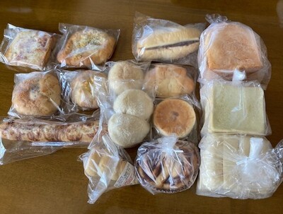 写真は一例で、どんなパンが送られてくるかはその日の状況によりパン屋さんにおまかせ。
