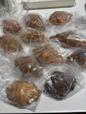 パンは冷凍の物もあるため、リベイク(温め直し)して召し上がってください。すぐに食べないものは冷凍庫に保管。