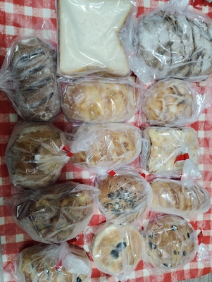 パンは冷凍の物もあるため、リベイク(温め直し)して召し上がってください。すぐに食べないものは冷凍庫に保管。
