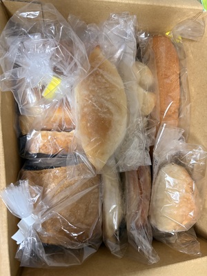 パンは冷凍の物もあるため、リベイク(温め直し)して召し上がってください。すぐに食べないものは冷凍庫に保管。