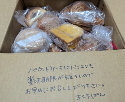 パン屋さんでは、天候などの影響によってやむを得ずパンが売れ残り食べられるのにどうしても廃棄になってしまうパンが出ることがあります。味や見た目は普段売られているものとほとんど変わりません。