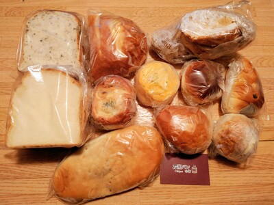 写真は一例で、どんなパンが送られてくるかはその日の状況によりパン屋さんにおまかせ。