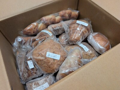 パン屋さんでは、天候などの影響によってやむを得ずパンが売れ残り食べられるのにどうしても廃棄になってしまうパンが出ることがあります。味や見た目は普段売られているものとほとんど変わりません。