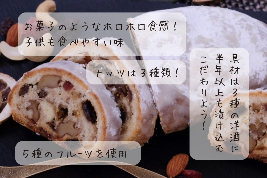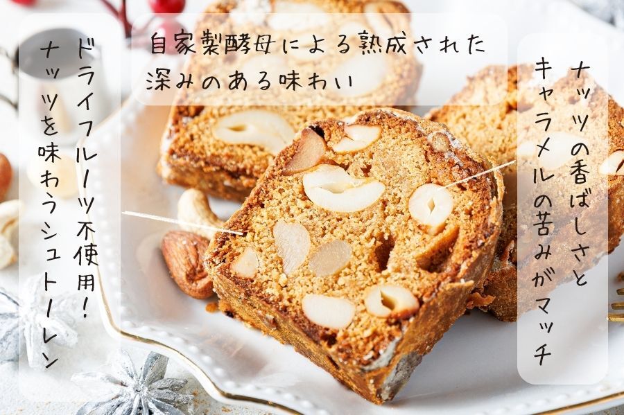 - 「シュトーレンにはドライフルーツとナッツがふんだんに使われますが、