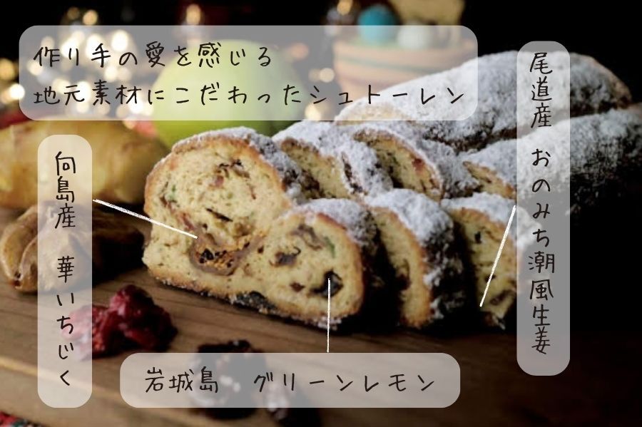 1年を通して、地元で採れる素材を旬の時期に加工し、シュトーレンに込めています。」 - 商品名:しまなみシュトーレン2025