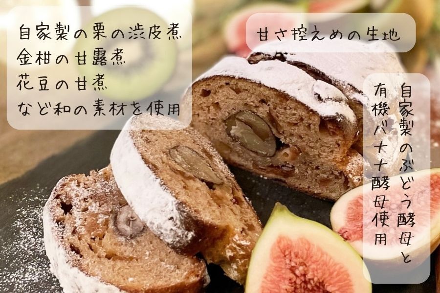 - 自分にはちょっと甘すぎたり具材が物足りないなと思うことがあり、お客様には一口ごとに満足してもらえるシュトーレンを作りたいと改良してまいりました。