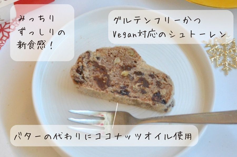 - 「グルテンフリ&ヴィーガンに加えて、大豆も白砂糖も使わないシュトーレンを、