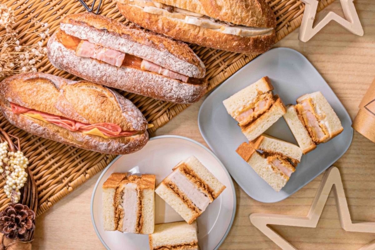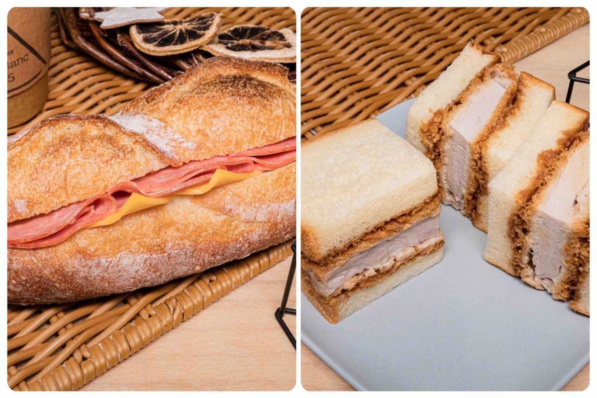 シンプルなハムとチーズが入ったバゲットサンドや、ふわふわ食パンのカツサンドなど、