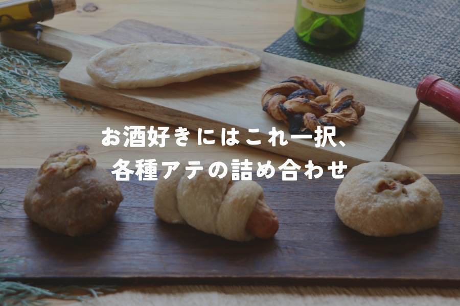 ビールのアテ、焼酎のアテ、白ワインのアテ、赤ワインのアテ、ウィスキーのアテとして開発されたパン5種類が2つずつ入ります。