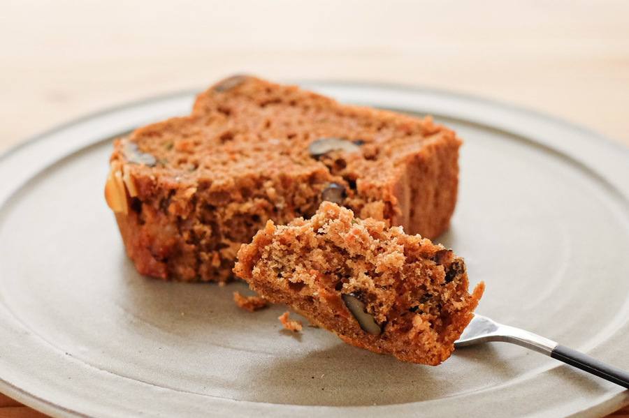生地の全体の1/4以上を人参が占めているのに、口当たりはふわっと軽く、朝でもぺろりと食べられる優しい仕上がりです。