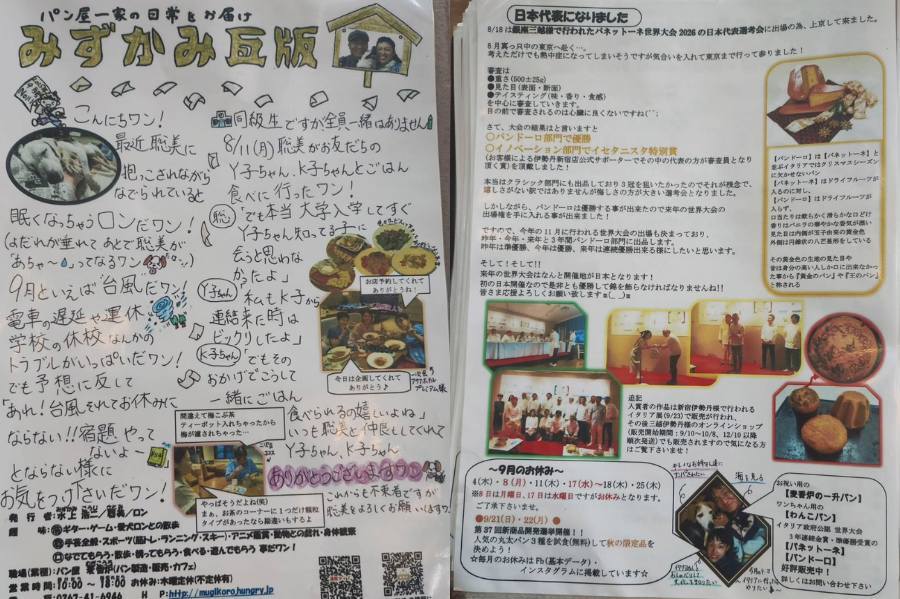 - パンについてのご案内や、名探偵ロンの事件ファイル、みずかみ瓦版など、3,4種類のものを同封しています。