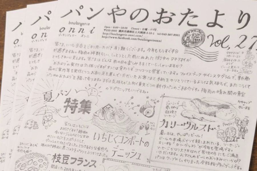 - 夫婦でパン屋を営んでいて、「パンやのおたより」は妻が作っています。