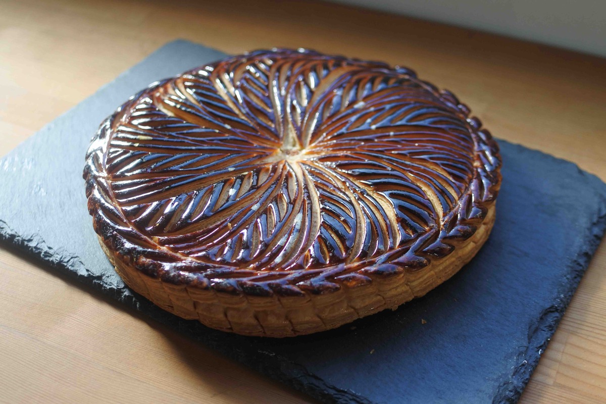 1月になると、パン屋さんやケーキ屋さんの店頭に、表面に美しい模様が描かれたパイ菓子が並びます。