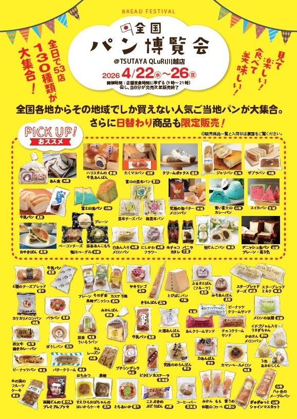 全国パン博覧会 in TSUTAYA QLuRi川越店(埼玉県):4月22日~26日