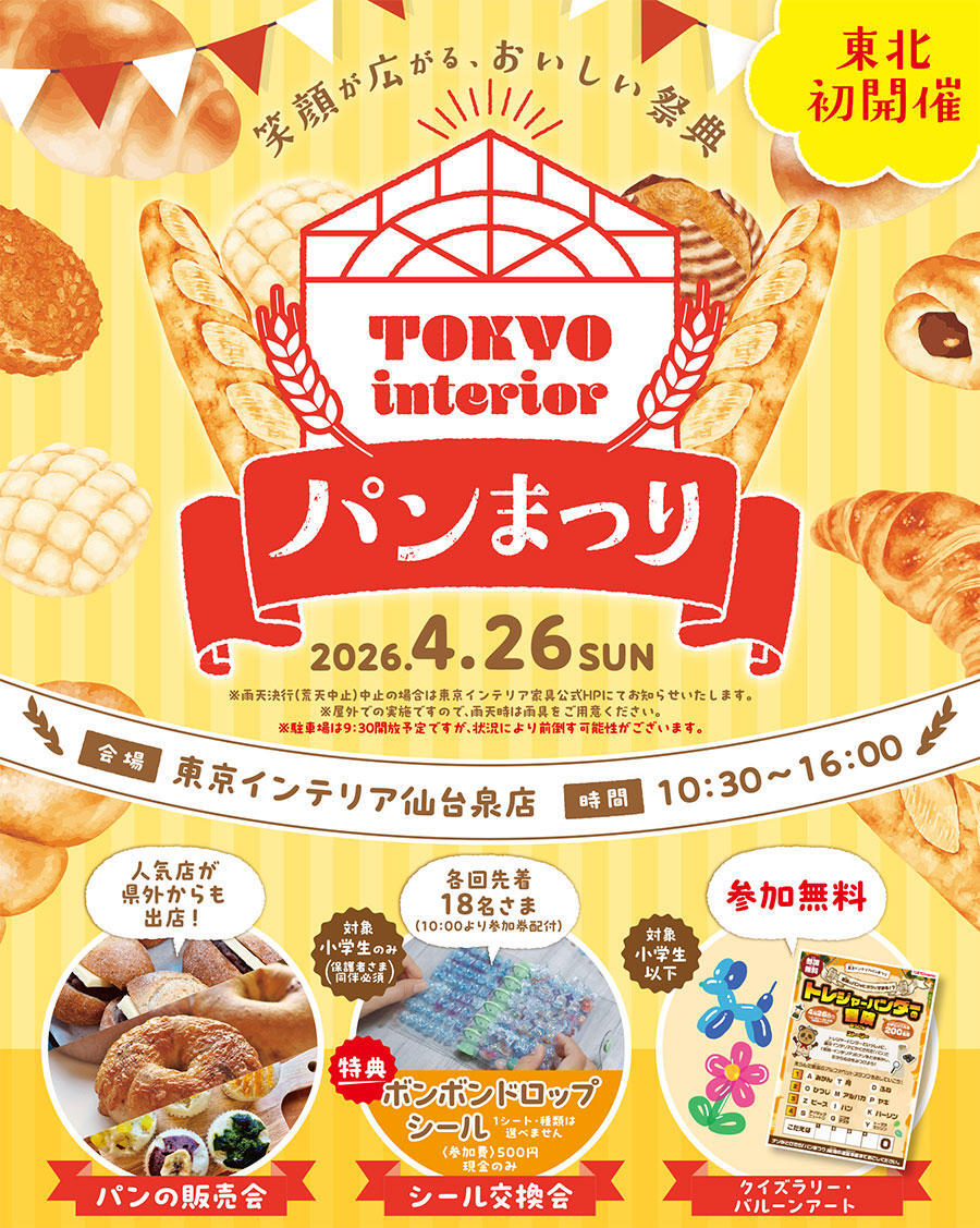 全国で大人気の「東京インテリア パンまつり」が仙台泉店で開催決定!