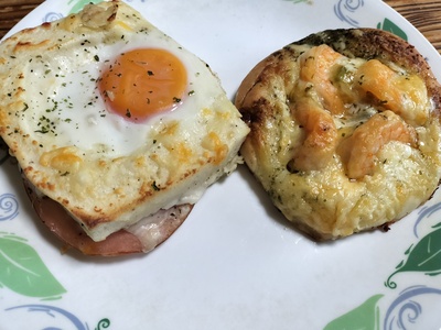 旭ベーカリーさんのパンセット一覧表が同封されており、宝箱にあるものにはチェックが入っているので、まるでChocolateのギフトボックスを試す時のようにワクワクしながら少しずつ楽しみにいただきました。アボカドシュリンプピザをはじめ、惣菜パンの具がたっぷりでしっかり主張しています。『クロックマダム』、こんなに手が込んだパンを私は初めて食べました。惣菜パンというよりご馳走パンと呼ぶ方が相応しいと思います。このパン、毎日でも食べたいです! くるみレーズンは旭ベーカリーさんの人気商品だそうですが、持ったときのずっしり感はレーズン好きの期待を裏切りませんね。私は1センチ位の厚さに切ってから少し焼いていただきました。素材の美味しさ、そのものでした。ごちそうさまでした。