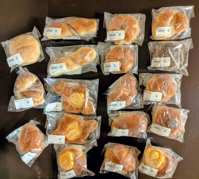 甘い系から惣菜系まで、様々な種類のパンが入っていました。食べやすそうな大きさで、1、2個パクパクっと食べれちゃいます。家族がクリームチーズが好きで、1個入っていたので、ラッキーでした。ありがとうございました!