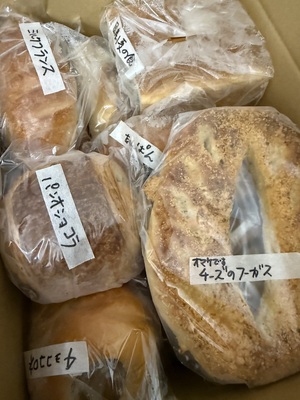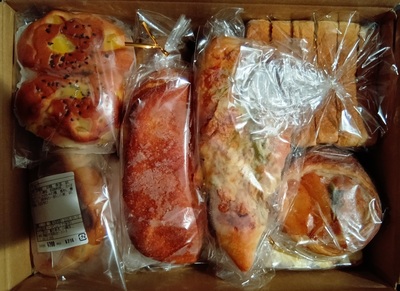 箱の中はたくさんの色々な種類のパンが一杯でびっくり!来年もぜひおいしいパンをお願いしま~す。
