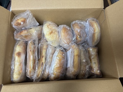 段ボ-ル箱に、ぴっちり24個もの美味しそうなパンが、敷き詰められていました。年末のお忙しい中、ご対応ありがとうございます。
