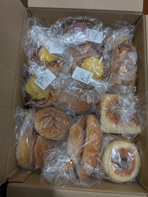 宝箱受け取りました。段ボールの中に隙間なくパンが入っていてうれしいです。今から食べるのが楽しみです。