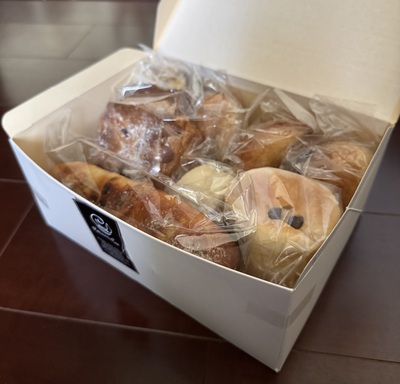 たくさんの種類のパンが箱にギッシリ入っていました。大好きなプレッツェルが入っていたのがとても嬉しいです。