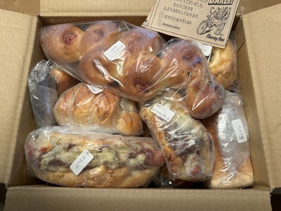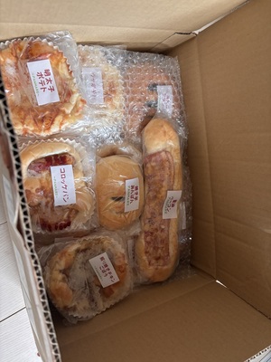 楽しみにしていました!届いて開けると箱いっぱいのパンでした!家族皆で楽しみたいと思います!