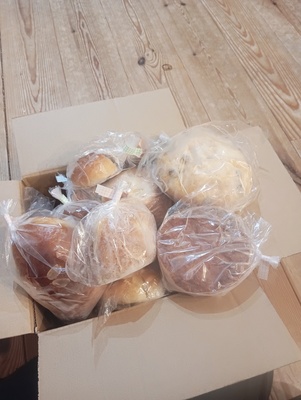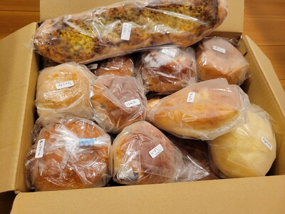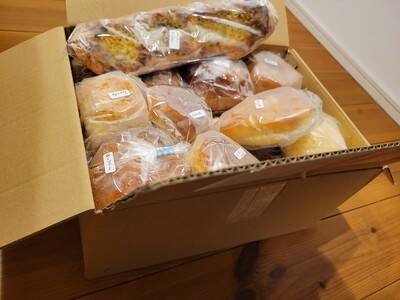 可愛らしいサイズのパンが箱いっぱいに詰まっていました。クロワッサンやベーグルにあんぱんやくるみパンなどバラエティー豊かで毎日食べるのが楽しみです!ありがとうございました☺︎