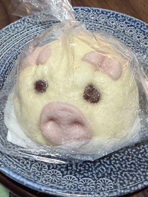 リピートしたら飽きないようにか、変わり種のパンを入れて下さり、今回は可愛い豚さん(中身はカスタードクリームだそうです)が入っていました。