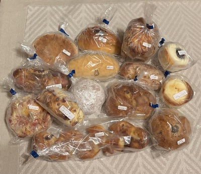 📦を開けたら、よくこんな入ってたなと思う位次から次へと🥐達が。被りなく16種入っていました😊レビューをみて気になっていたココナッツクランベリー、紅茶ホワイト、コーンブレッドも入っていて嬉しい限りです。🥐系が多く、甘系とお食事系半分とバランス良い印象でした。
