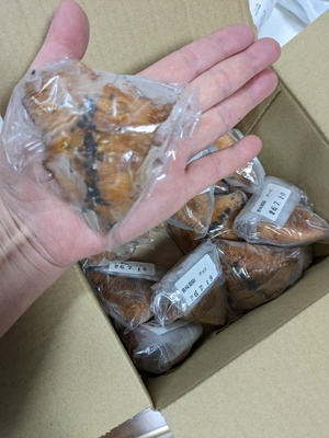 注文して、わりとすぐに届いて嬉しいです☺️開けると、思った以上にたくさんの色んな種類のパンが入っていて(24個くらい)、しかも大きい💖惣菜パンと甘い系のパン、同じくらいの量入っていて(どちらかというと甘い系が多め)食べたかったアップルパイも入っていて、食べる前から大満足です😊また解凍してゆっくり楽しみたいと思います。たくさんのパンありがとうございました😊
