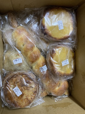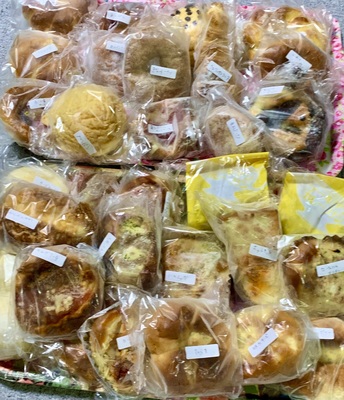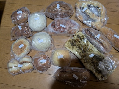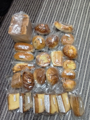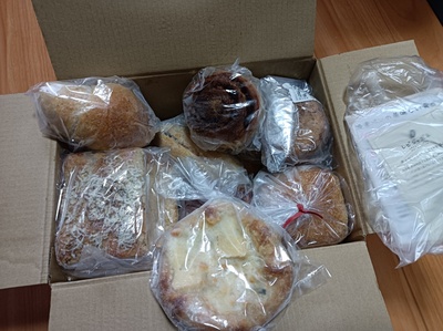 箱いっぱい📦の、美味しそうなパン🥖🥐🥪がどっさり届きました!お惣菜系が17個、甘味系が14個でした。