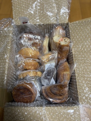 本日、夜間受け取りで、すみません、ご連絡遅くなりました。沢山のパンが入っていて、嬉しいです!楽しみです!有難うございました。