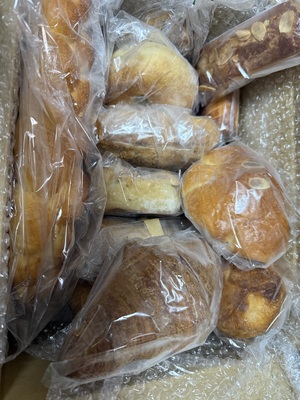 いつも丁寧な対応でパンの袋が二重になっていたり、商品一覧表や商品案内一覧表も入っていたりで至れり尽くせりです。商品案内一覧表は読んでいるだけで楽しく、こんなパンも食べてみたいなーと思ったより(笑)今回は3種類も食パンが入っていて食べ比べを楽しみました。個人的な好みは山食かな。トーストしてもモチモチ食感で食べ応えもバツグン👍その他、ハード系に具の入っているものはたっぷり入っていたどこを食べても具沢山。生地も好みです。たくさんの種類をありがとうございました✨ごちそうさまでした♪