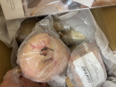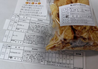 個々に付箋で商品名を記載(剥がれないようテープでもとめてある!)いただいている他に、取り扱われているパンの一覧に今回入っている商品に印をつけていただいていて、とても丁寧でありがたかったです。