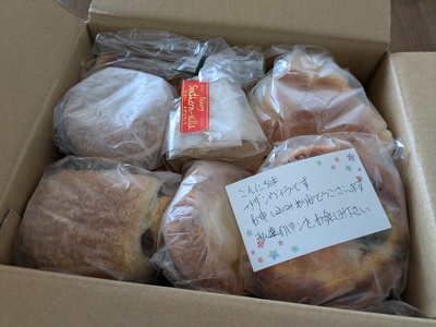 宝箱受け取りました。箱びっしりのパンに本当に驚きました!沢山の美味しそうなパンをありがとうございました。美味しいパンが食べれるって幸せです!