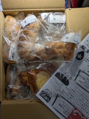 冷凍便で到着しました。はじめて購入しましたが、好きなタイプの美味しそうなパンが沢山入っていました。ありがとうございました。