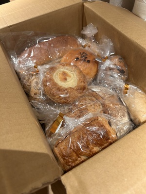 箱いっぱいに入っていて、翌日解凍して、食べました。バイカラークロワッサンとても美味しかったです。他のパンも食べるのが楽しみです。またリピしたいと思います。