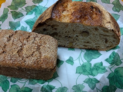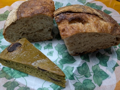 ガーリックアーモンド入のバルクも、ガーリックが控えめ過ぎず、効かせ過ぎでもなく絶妙です。食べている顔がにやけていると言われてしまいました☺️夕飯の用意をしながら、小腹が空いて「ライ」をスライスして口に。手抜きをしたくなる夕食作りでしたが、一口頬張った「ライ」にエネルギーを貰った感じです✨️3時には抹茶風味のビィーガンケーキを分けて食べさせていただきました。粉、豆乳、甜菜糖、サワー種、菜種油といったこだわり。Vegan Rawケーキにもいろいろあるんですね。豆乳のほんのりした甘さ、新緑の季節を思わせる抹茶の緑。目にも嬉しかったです。