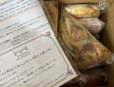 パンだけで朝食になるような、具材色々なパンが入っていました。そして、トリュフ塩の塩パン、食べるのが楽しみです。ありがとうございました!