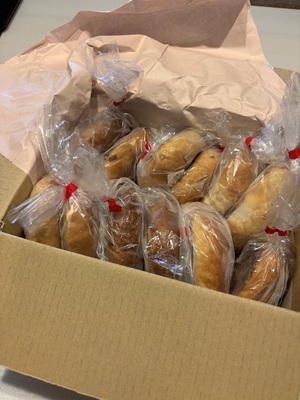 特に大好きなベーグルがたくさん入っていて、選ぶ楽しさもひとしおです。一つひとつ丁寧に梱包されたパンからは、大切に焼き上げられたことが伝わってきます。事前のメッセージ対応も迅速かつ丁寧で、スタッフ皆様のお人柄の素晴らしさを感じておりましたが、実際にパンを食べてその確信が強まりました。どのパンも生地の旨みがしっかりしており、本当においしいです!
