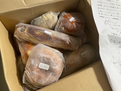 受取タイミングが合わず、本日、箱いっぱいのパンを受け取りました。