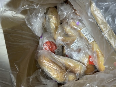 箱いっぱいのパンありがとうございます。冷凍庫に入り切らないんじゃないかと思うぐらいの量でした。カレーパン、昆布パンも2つずつ入ってて嬉しい限りです。