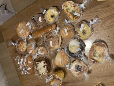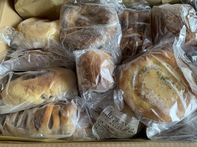 連絡が遅くなり失礼しました。無事に届きました🎁シンプルな食事パンが多いかな?との予想とは逆にリッチな惣菜パンやデニッシュ系が多くてびっくりしました!パリパリ食感のデニッシュ生地の美味しさは勿論、クロックムッシュのこんがり焼けた食パンの生地の美味しさやカンパーニュの生地の旨みと程好い酸味が印象的で、またいつか食べてみたいですし今回は入ってなかった葡萄食パンやレーズン系のパンがすごく気になります😋またご縁がある日を楽しみにしています🎶ご馳走様でした💐真夜中に大変失礼致しました🙇