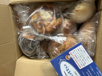 とても美味しそうなパンを箱いっぱい送って頂きありがとうございました。また、包装やお手紙にもパンへの愛情が溢れていて、こちらまで何だか嬉しくなりました。こらから食べるのが楽しみです♪