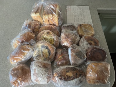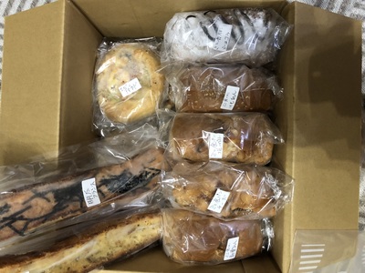 食パン2斤、バケット2本、ハードパンメインのパン多数、惣菜系パンも数種類入っていました。
