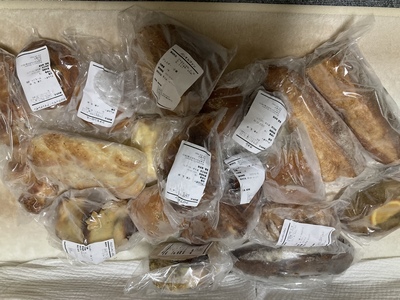 段ボールいっぱいに種類の違うパンがたくさん入っていてテンションあがりました。