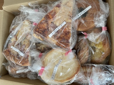 箱いっぱいにいろいろな種類のパンがバランス良く入っていて、クロワッサンや塩パン、ピザなど朝食にぴったりなものや、カヌレやりんごのタルト、クリームパンなどおやつに楽しみなものまで、家族で大満足です。ありがとうございました。